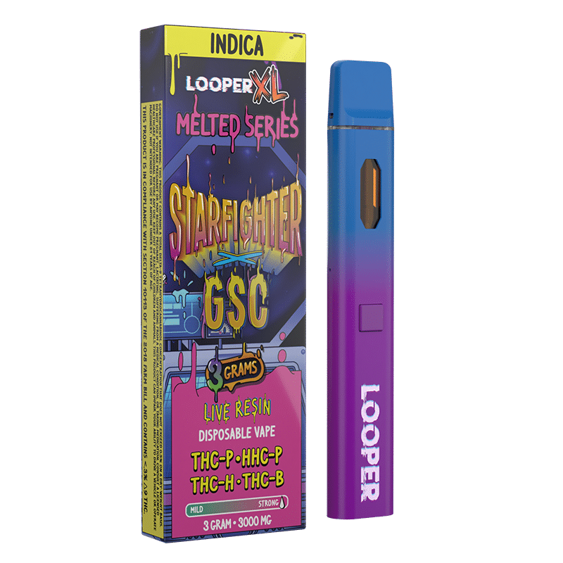 En términos de efectos, el desechable de la serie Melted de Looper con extracto de Starfighter GSC proporciona una combinación equilibrada de euforia y relajación. Los usuarios reportan sentir una oleada de felicidad y una inclinación a la risa, seguido de un estado de relajación profunda que es ideal para desestresarse después de un día largo. Además, es conocido por inducir un fuerte apetito, lo que lo hace perfecto para quienes buscan aliviar la falta de hambre. La cepa es ideal para cualquier ocasión, ofreciendo un efecto agradable que puede ser disfrutado tanto en reuniones sociales como en momentos de tranquilidad.
